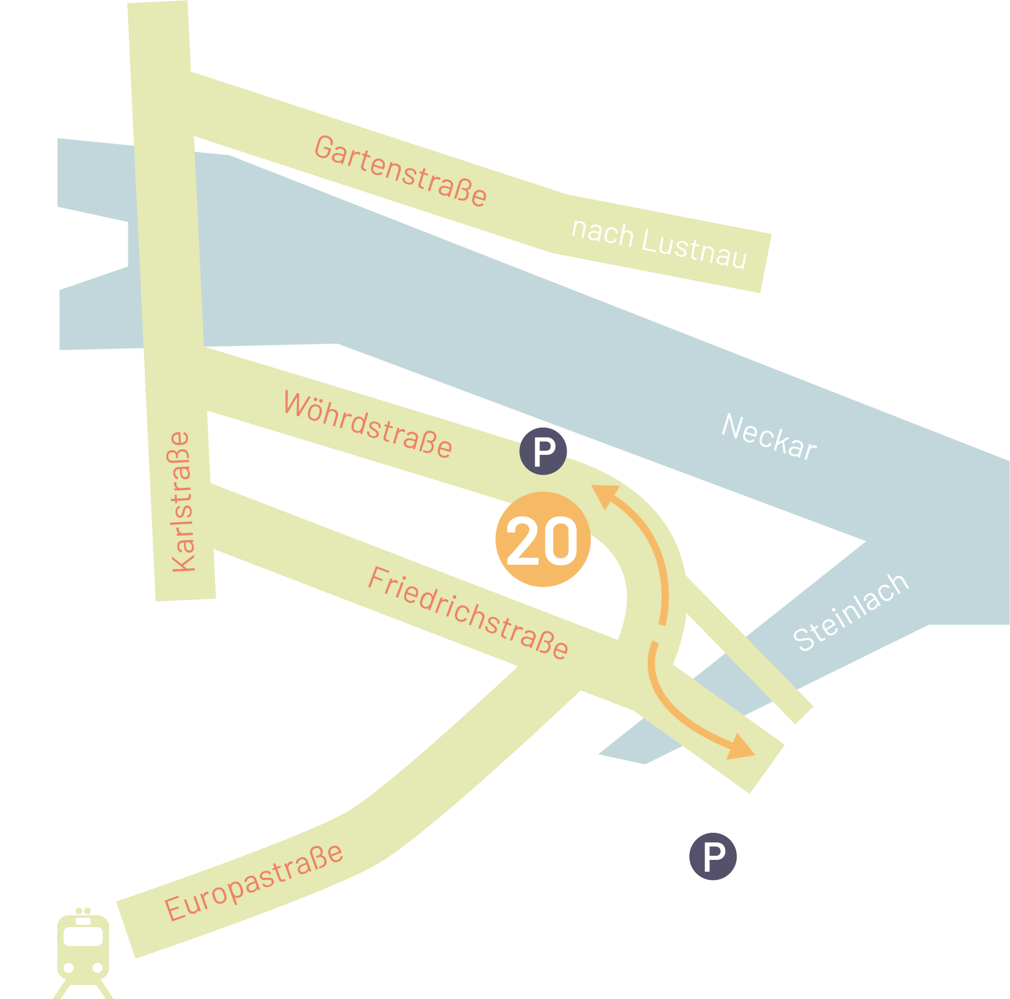 Wegen Renovierungsarbeiten im Neckarparkhaus sind die Parkplätze reduziert oder es kann bei der Einfahrt zu längeren Wartezeiten kommen. Weitere Parkmöglichkeiten gibt es im Metropolparkhaus.